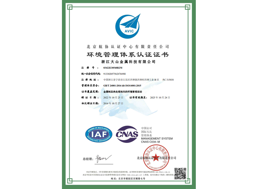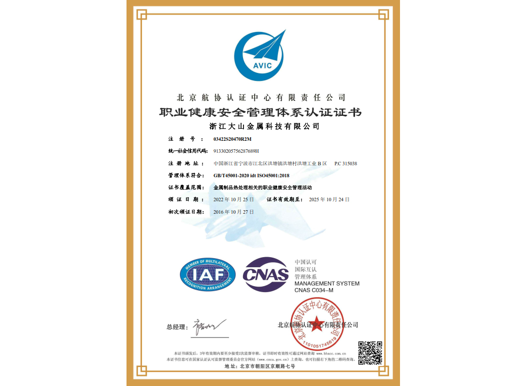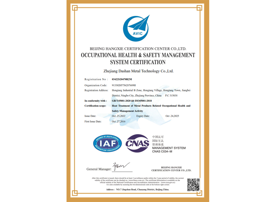 經(jīng)過(guò)近35年來(lái)不斷引進(jìn)先進(jìn)的熱處理設(shè)備和技術(shù),使企業(yè)具備了雄厚的產(chǎn)品熱處理工藝開(kāi)發(fā)和生產(chǎn)能力,在熱處理行業(yè)中取得了令人矚目的業(yè)績(jī),在客戶(hù)中建立了良好的口碑。本企業(yè)已通過(guò)IATF 16949:2016 質(zhì)量管理體系、GB/T24001-2016 idt ISO14001:2015 環(huán)境管理體系、ISO 45001:2018 職業(yè)健康安全管理體系認(rèn)證,正全面貫徹執(zhí)行相關(guān)管理體系標(biāo)準(zhǔn),為客戶(hù)提供更有保證的全面服務(wù)。大山愿與各界朋友攜手共進(jìn),為提高熱處理質(zhì)量不斷努力!